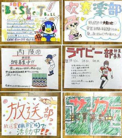 8日から23日までを1年生の部活動仮入部期間にしています。各クラブとも新入生の獲得をねらって勧誘のポスターを作成しました。どれも力作で思いを込めています。掲示版に張られたポスターを生徒が見ています。そのポスターを紹介します。