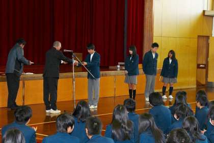 もう今年も終わりを迎えようとしています。学校の授業も本日で終了。全校集会を開き,伝達表彰,生徒会からのメッセージ,そして,校長からの話で今年も締めくくりとなりました。冬休みの2週間,安全に気を付けて健康に過ごしてください。では,皆さんよいお年を。