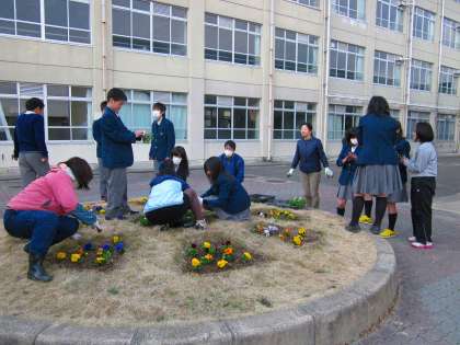 少人数では時間がかかる作業も委員会の人が手伝ってくれると植え替えの作業もはかどりスムーズに終えることが出来ました。協力して行うことは大切ですね。3月ごろから綺麗な花が西陵中学校を覆ってくれることでしょう。お手伝いをしてくれた皆さんありがとうございました。