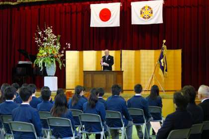 (一部抜粋) 新入生の皆さん,入学おめでとうございます。今日から皆さんは,中学生として新しい生活が始まります。楽しみにしていることや不安に思っていることがたくさんあると思いますが,この三年間は心身ともに大きく成長する時期でもあります。この西陵中学校で多くの経験や体験をし,自ら主体的に学ぶ力を身に着け,今後社会の一員として自分らしい生き方を追求していってほしいと願っています。