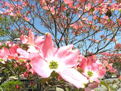 校門入って右手の花壇に花水木が大変に鮮やかに咲いています。桜のような淡い美しさではありませんが、華やかなピンクの美しさを楽しませてくれます。梅が過ぎれば、桜。桜が過ぎれば花水木。花の咲くサイクルは季節の感覚をどのように感じ取っているのでしょうか。なんとも不思議です。人間の感覚神経や器官を凌ぐ感覚機能をもっているのではないかと思えます。