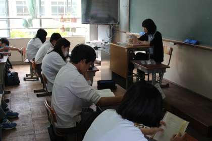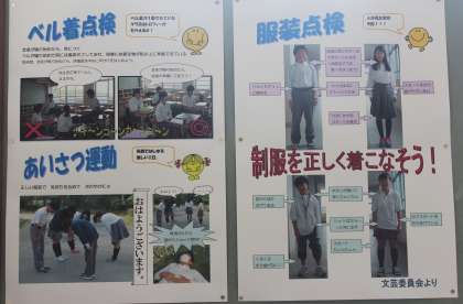 学校の取り組み・掲示物の紹介と朝読書の様子です。