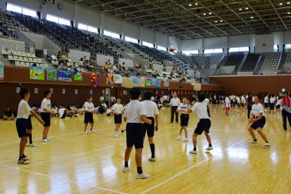 開会式の後,午前中はバレーボールに桂中学校と合同チームで参加しました。