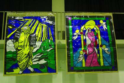 舞台発表の後は展示鑑賞。2年生が作成したステンドグラスや校外学習新聞。数学からの挑戦状『数学クイズラリー』。色々趣向を凝らしたものが展示されています。