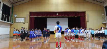 生徒会長からのあいさつのあと、各部活動の大会に向けたトレーニングの様子が映されたムービーを見て、モチベーションを高めました。