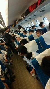 8:03京都駅発小倉行き「のぞみ99号」に乗り込み出発しました。小倉到着まで2時間半,生徒のテンションも上がってくると思いますが,マナーも守りつつ楽しい時間にしてください。