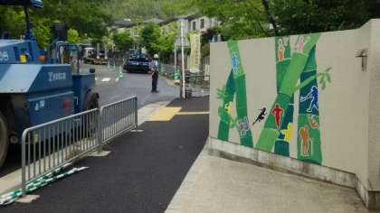 学校の東側樹木が生い茂り,歩道が通行しにくくなっていました。ご近所にもご心配をおかけしています。教育委員会にお願いしたところ,このたび剪定を行ってもらえることになりました。また先日から、正門前の歩道や車道の舗装がすすんでいます。生徒の学校生活にできるだけ影響しない時間帯で工事をしてもらっています。