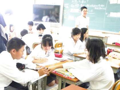 9月15日(水)2限に稗田先生(数学科)が1年3組でG−学習の授業研修を行いました。学習内容は「等式の性質」を使った方程式への導入です。等式の両辺から同数、同量を加除しても等式は成立するということから未知数を導き出す行程をG−学習で学び、生徒がその行程を説明するという言語活動の場面設定を組み入れた授業でした。