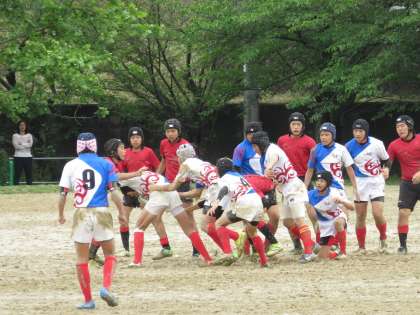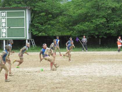 5月13日(土),吉祥院グランドでラグビーの準々決勝が行われました。本校ラグビー部は伏見中学校と対戦しました。前半は7−7の互角で折り返し,後半はトライを取ったら取り返すとシーソーゲームでした,最後は同点からペナルティーキックを決めノーサイド。20−17で劇的な勝利でした。雨上がりのグランドを泥まみれになりながら懸命にボールを追いかけすばらしい試合でした。準決勝は5月20日(土)に宝ヶ池公園球技場で行われます。応援よろしくお願いします。