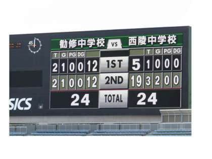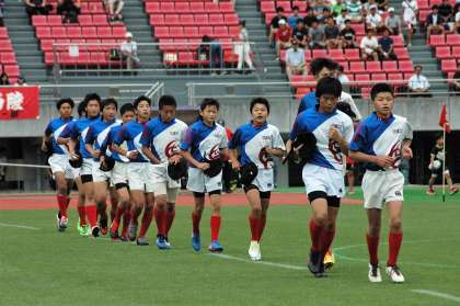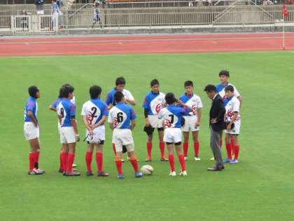 本日,第46回京都ラグビー祭が西京極総合運動公園陸上競技場兼球技場で行われています。10時50分から中学校の春季総合体育大会決勝戦が行われ,本校は新人戦優勝校勧修中学校と対戦しました。 前半は5−12で折り返し,後半も一時は10−24までリードを許しましたが,大声援が選手たちに伝わり24−24に追いつき,その後も攻め続けましたがそのままノーサイド。両校のボールを追いかける姿に感動しました。4月下旬から多くの皆様に応援していただき,ありがとうございました。選手権大会に向けて更に成長してほしいと願っています。