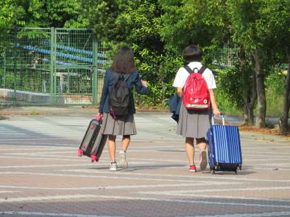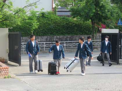 いよいよ,今日から3日間,3年生は修学旅行に出かけます。大きな鞄をもって元気に登校しています。
