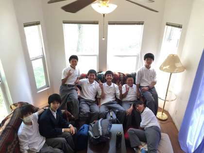 バスで山中湖の体験場所に到着しました。ウオーターロデオ,カヌー,ワカサギ釣りのグループに分かれて体験を行います。