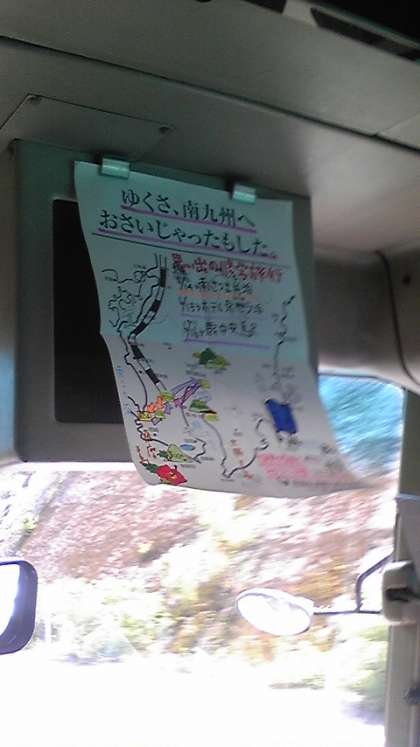 バス内でレクリエーション中。