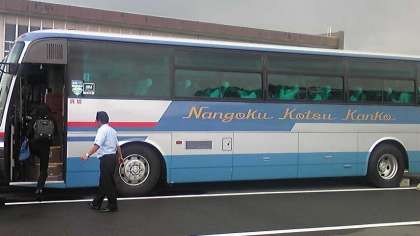 鹿児島ナンバーの観光バスにて、本日の宿に向かいます。