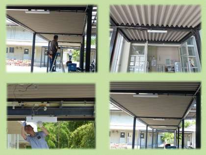 渡り廊下の電灯をLED電球に付け替えました。