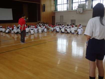 上里小学校では、朝の校門挨拶から始まり、各学年各クラスの授業に入らせていただきました。また、給食・管理用務員・学校事務・学校保健の仕事など、授業だけでなく、児童を支えているいろいろな仕事の勉強もできました。