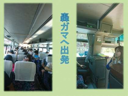 沖縄到着。バスに乗りガマの学習にまいります。