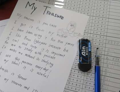 自分の宝物を持参し,それをテレビ画面に映し出して説明しました。