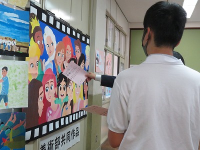 1・2学期の学びの成果をみんなで鑑賞します。誰もが真剣に鑑賞できていました。