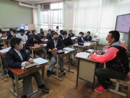 1年生男子は保健「呼吸器・循環器」の授業でした。