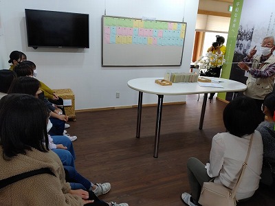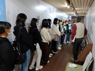 展示見学でガイドさんの話を聞いて,学習しています。