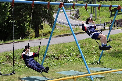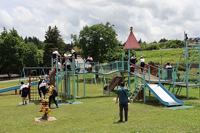 昼食後は楽しく公園で遊んでいます。