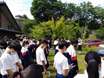 千羽鶴を捧げた後は,みんなで黙祷しました。