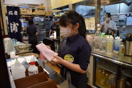 お皿拭き、バッシングなどを