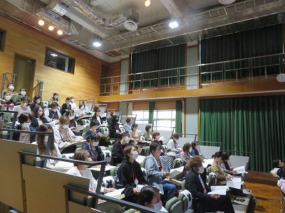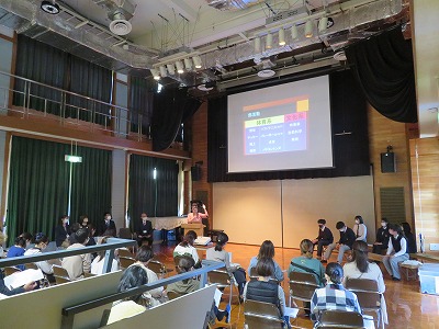 小学生の授業・部活動体験と並行して、新入生保護者説明会がコミュニティホールで実施されました。説明会の後は、部活動体験の様子を見学してもらいました。