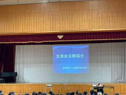 新入生を迎える会の様子です。司会や委員会の紹介、生徒会本部の皆さん、ありがとうございました。