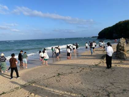 空はどんどん晴れてきました。朝食前に海辺を散策します。