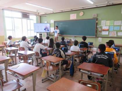 今日は午後から大原野小学校と上里小学校の6年生が来てくれました。生徒会本部役員による歓迎の言葉の後は、中学校の先生方の授業を熱心に受けていました。授業体験の後は部活動体験をし、各小学校へ帰っていきました。来年の4月の入学式で会えるのを楽しみにしています。