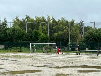 7月14日(日)・15日(月)に行われた京都市中学校選手権総合体育大会サッカーの部1・2回線に本校サッカー部が出場しました。特に、14日は、時折、激しく降る雨の中での試合で、グラウンドコンディションも良くありませんでした。そんな中、日頃の練習の成果を発揮すべく、精一杯プレーしました。