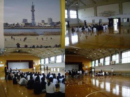 今日6限 体育館で 3年生が修学旅行前の集会を行っていました