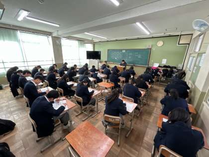 今日は、1・2年生で学習確認プログラムを実施しています。学年末テストを控え、テスト勉強を始めている人もいると思います。今回は、今年度、最後となる学習確認プログラムです。1年間のまとめのテストとして、真剣に取り組んでいます。今の自分の力を確かめ、これからの学習につなげてください。