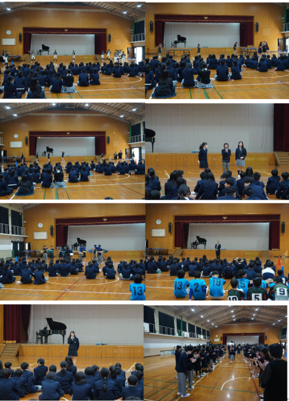 令和7年4月11日(金)新入生を迎える会を行いました。内容は新入生入場から始まり、校歌斉唱・歓迎の言葉・生徒会より委員会紹介・新入生への記念品贈呈・新入生の挨拶・部活動紹介・校長先生のお話・終わりの言葉が行われました。先輩たちの司会進行の素晴らしさや一つ一つの活動のクオリティの高さに自分たちの可能性を見たのではないでしょうか。新入生の挨拶もこれからの成長を感じさせる立派なものでした。部活動紹介では先輩たちの楽しそうな姿に自分も参加したくなった人もいたのではないでしょうか。新入生にとっても2年生3年生にとっても良い新入生を迎える会でした。