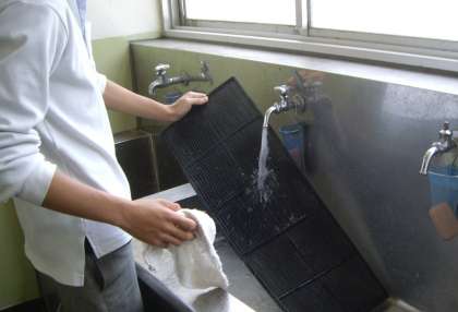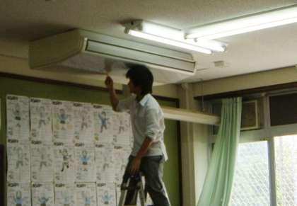 丹念に 洗浄作業をし 暑い夏への 準備を行いました