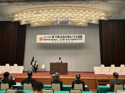 「社会を明るくする運動西京区推進委員会結成式」の中で、作文コンテストで「西京区社会を明るくする運動推進委員長賞」を受賞した本校1年生男子生徒が、受賞作文を発表しました。広い会場で大勢の前での発表だったので、緊張もあったかと思いますが、感情豊かに素晴らしい発表をしてくれました。その後、記念品が贈呈されました。