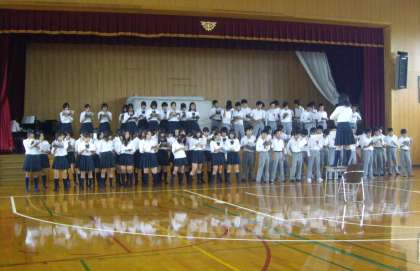 本日5限 2年生が 学年全体で 学年合唱の練習を初めてしました