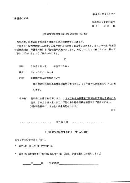 進路説明会のお知らせ