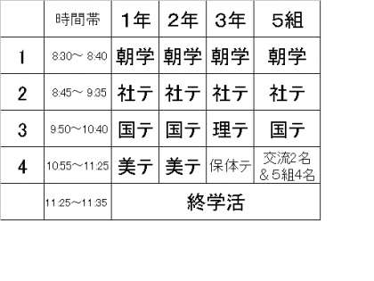 テスト1日目時間割