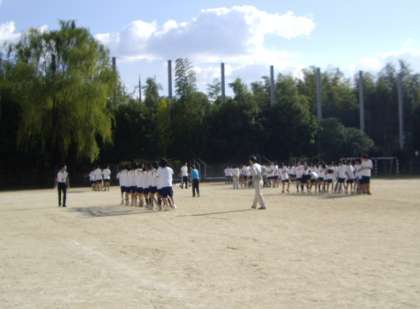 本日 授業終了後 グランドで各団別に集まり 団体競技の