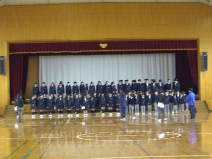 本日 6限 1年生が体育館で 3年生を送る会の練習を