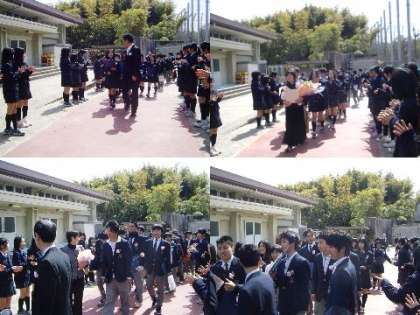 花道を通っていく 卒業生達です