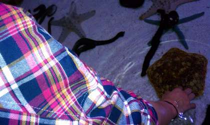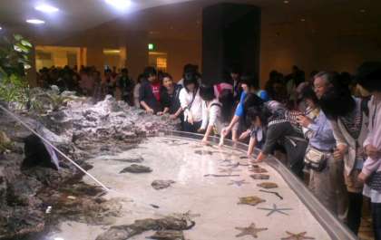 館内に入って 早速 タッチプールで サンゴ礁の浅瀬