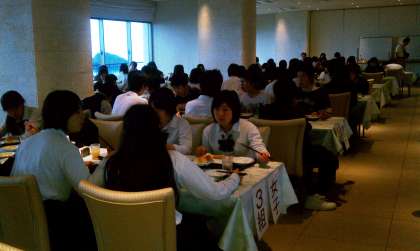 今朝も 元気に食事会場に 全員集まりました