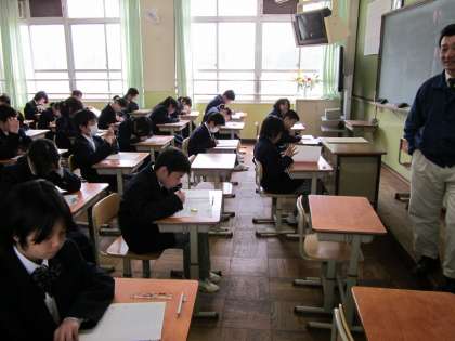 小学校のテストとは違って本格的なテストに、必死で取り組んでいました。