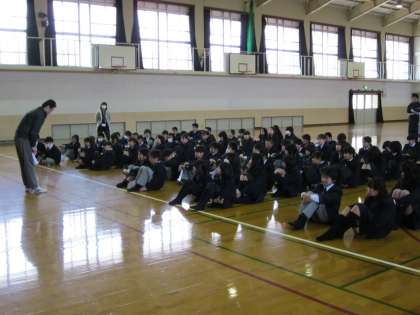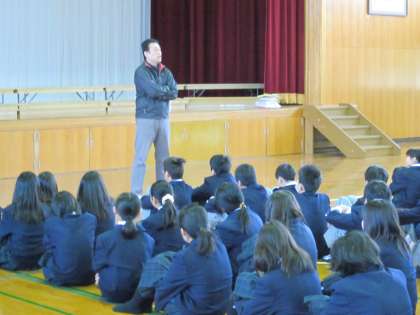 1年生は、集会です。教頭先生から入学式の態度、礼儀作法が素晴らしかった!とほめていただきました。けじめのある学年になるようがんばってね!
