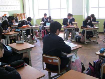3年は修学旅行のしおりが出来上がったので、それを読んでいる人がいます。