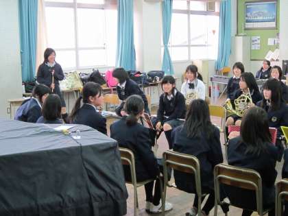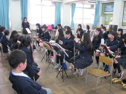 最後は、吹奏楽部です。最後のミィーティング中にお邪魔しました。今日も、1年生と2・3年生が向かい合って座ってます。3年の先輩が、ほんとに、しっかり丁寧に話してくれます。こんなところで、成長していくのですね!